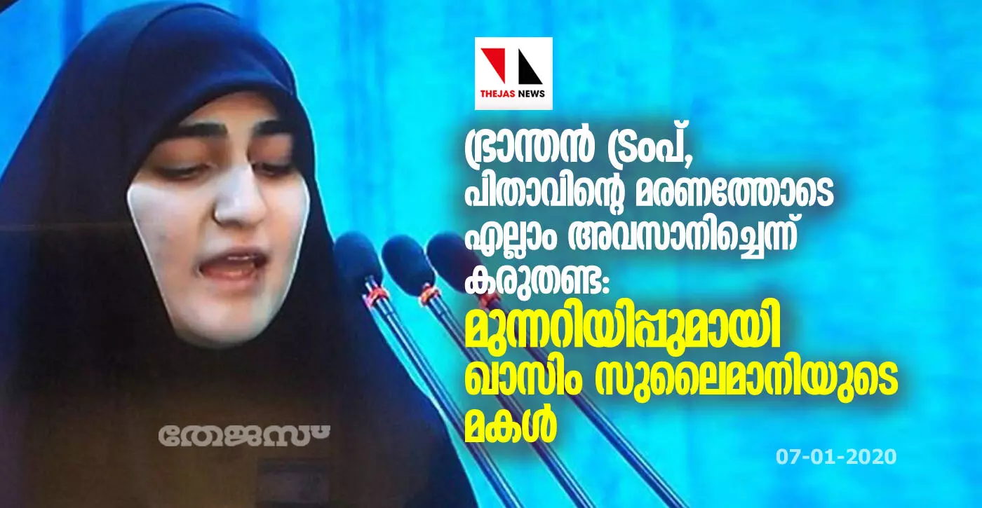 ഭ്രാന്തന് ട്രംപ്, പിതാവിന്റെ മരണത്തോടെ എല്ലാം അവസാനിച്ചെന്ന് കരുതണ്ട: മുന്നറിയിപ്പുമായി ഖാസിം സുലൈമാനിയുടെ മകള്