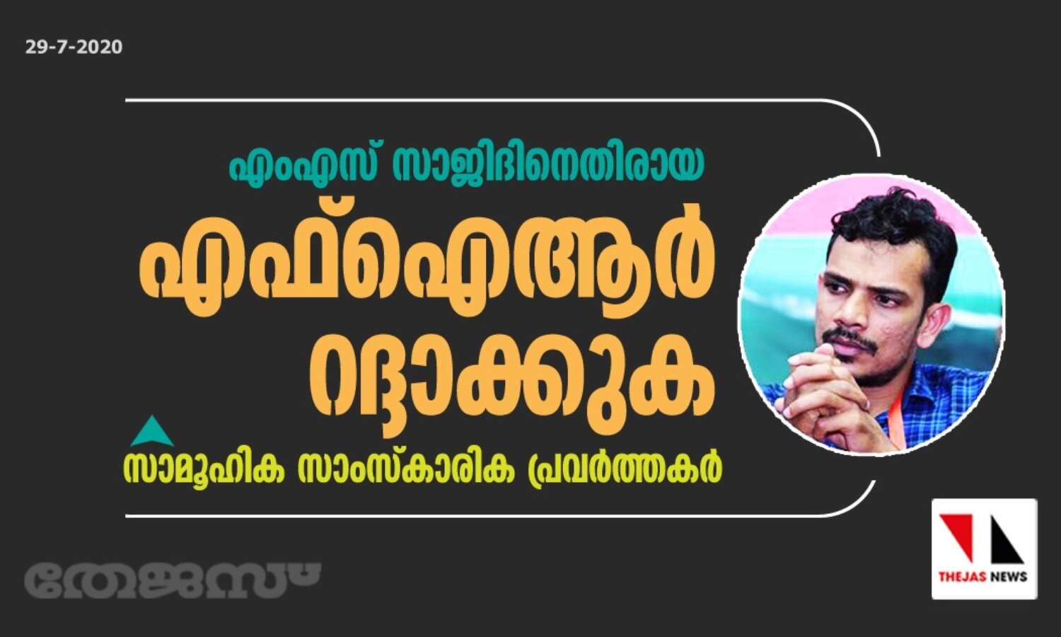 എംഎസ് സാജിദിനെതിരായ എഫ്ഐആര് റദ്ദാക്കുക: സാമൂഹിക സാംസ്കാരിക പ്രവര്ത്തകര്