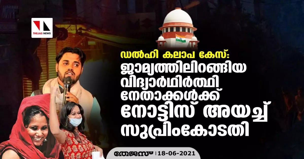 ഡല്ഹി കലാപക്കേസ്: ജാമ്യത്തിലിറങ്ങിയ വിദ്യാര്ഥി നേതാക്കള്ക്ക് നോട്ടീസ് അയച്ച് സുപ്രിംകോടതി