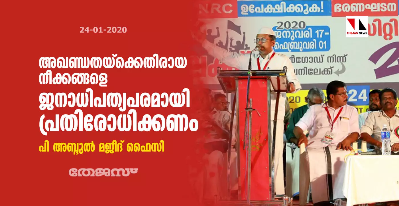 അഖണ്ഡതയ്ക്കെതിരായ നീക്കങ്ങളെ ജനാധിപത്യപരമായി പ്രതിരോധിക്കണം: പി അബ്ദുല് മജീദ് ഫൈസി