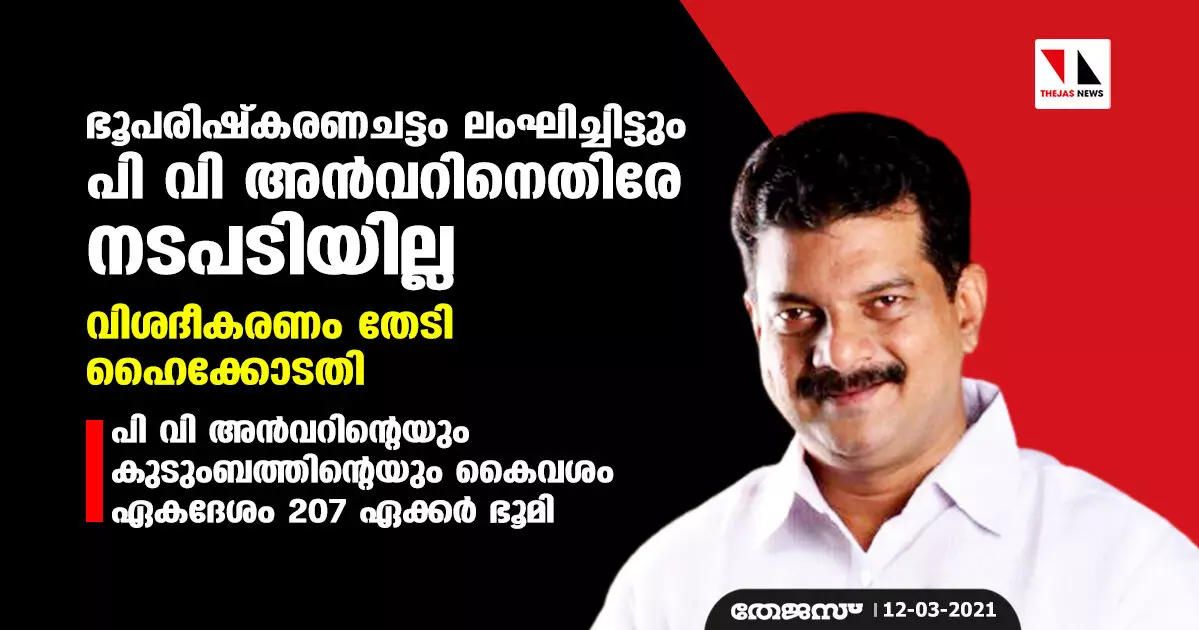ഭൂപരിഷ്കരണചട്ടം ലംഘിച്ചിട്ടും പിവി അൻവറിനെതിരേ നടപടിയില്ല; വിശദീകരണം തേടി ഹൈക്കോടതി