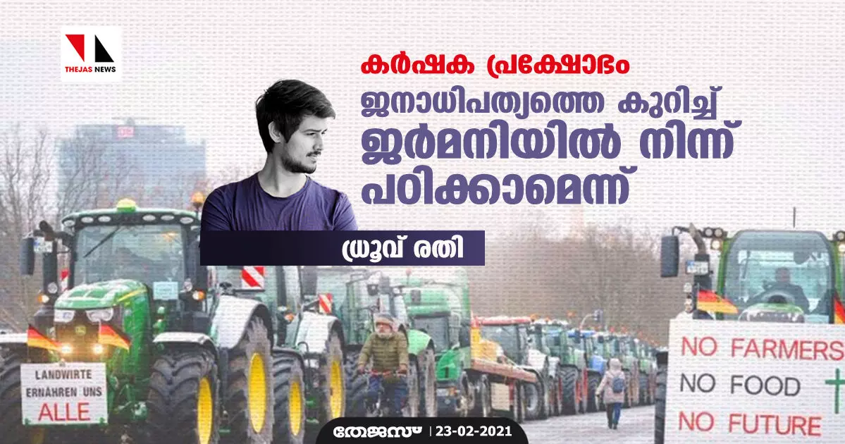 കര്ഷക പ്രക്ഷോഭം: ജനാധിപത്യത്തെ കുറിച്ച് ജര്മനിയില് നിന്ന് പഠിക്കാമെന്ന് ധ്രൂവ് രതി