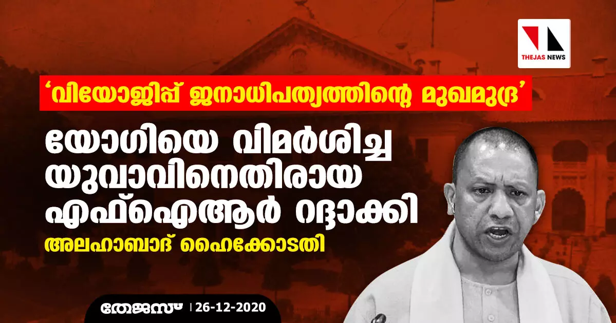 'വിയോജിപ്പ് ജനാധിപത്യത്തിന്റെ മുഖമുദ്ര'; യോഗിയെ വിമര്ശിച്ച യുവാവിനെതിരായ എഫ്ഐആര് റദ്ദാക്കി അലഹാബാദ് ഹൈക്കോടതി