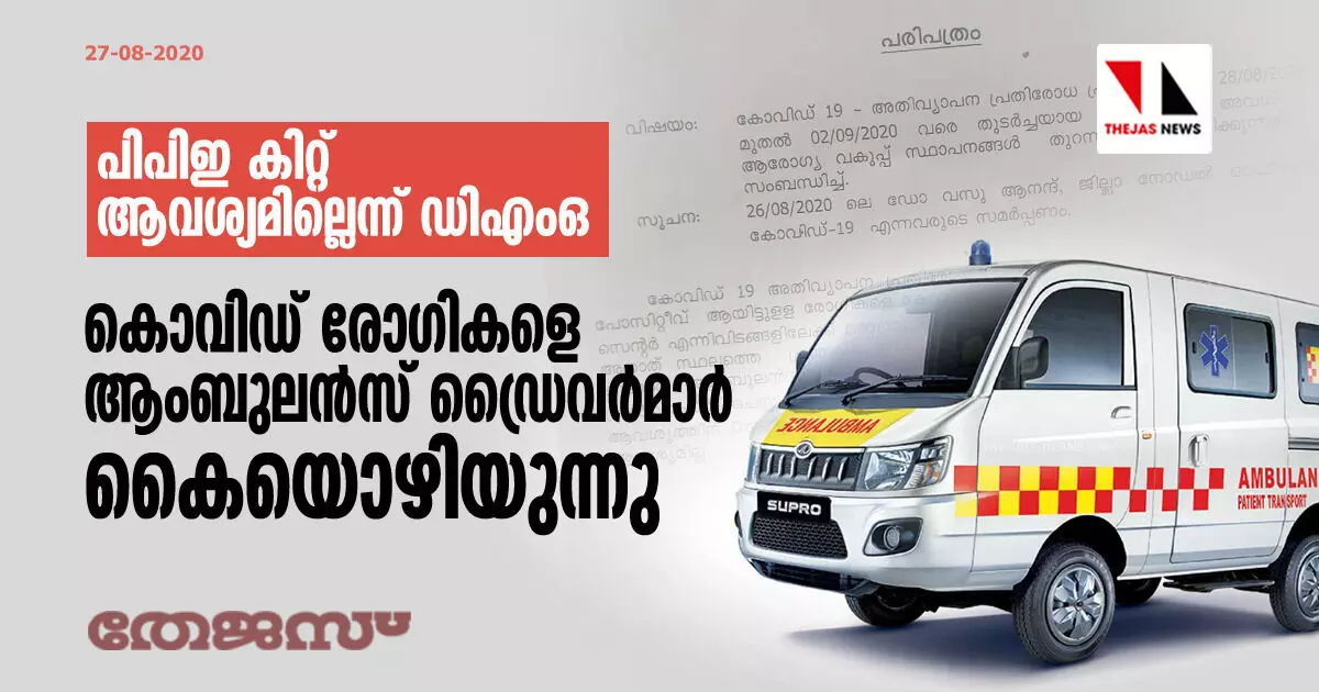 പിപിഇ കിറ്റ് ആവശ്യമില്ലെന്ന് ഡിഎംഒ; കൊവിഡ് രോഗികളെ ആംബുലന്സ് ഡ്രൈവര്മാര് കൈയൊഴിയുന്നു