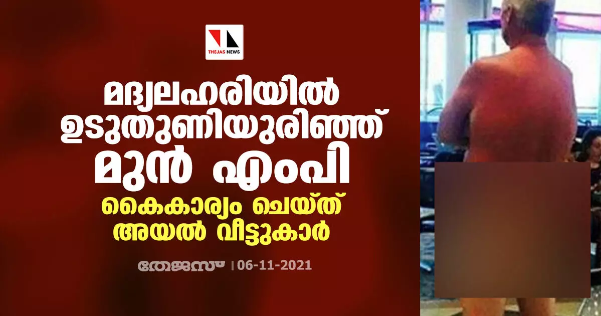 മദ്യലഹരിയില് ഉടുതുണിയുരിഞ്ഞ് മുന് എംപി; കൈകാര്യം ചെയ്ത് അയല് വീട്ടുകാര്