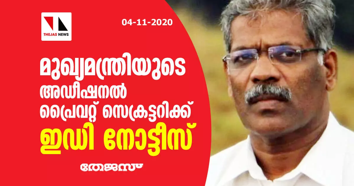 മുഖ്യമന്ത്രിയുടെ അഡീഷനല് പ്രൈവറ്റ് സെക്രട്ടറിക്ക് ഇഡി നോട്ടീസ്
