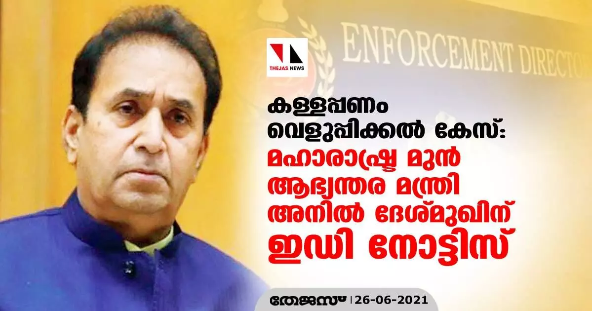 കള്ളപ്പണം വെളുപ്പിക്കല് കേസ്: മഹാരാഷ്ട്ര മുന് ആഭ്യന്തര മന്ത്രി അനില് ദേശ്മുഖിന് ഇഡി നോട്ടിസ്