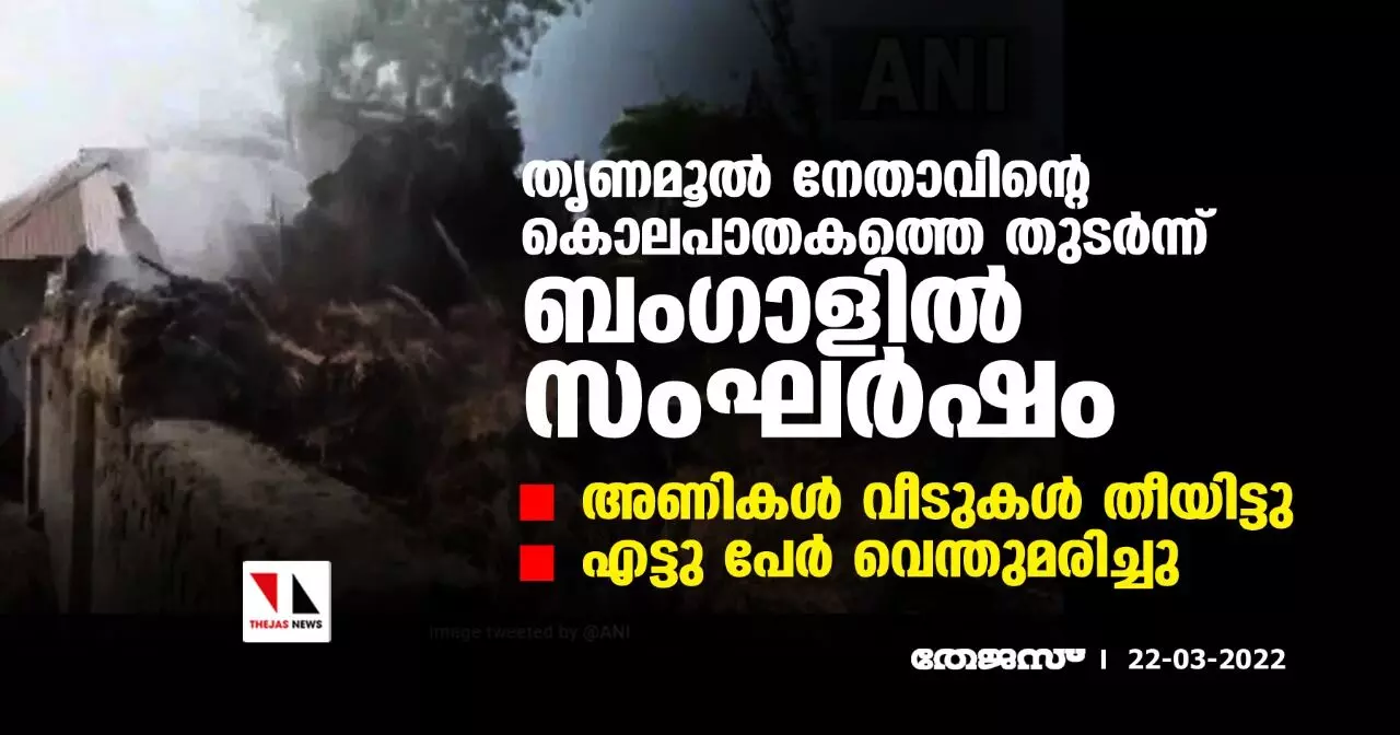 തൃണമൂല് നേതാവിന്റെ കൊലപാതകത്തെ തുടര്ന്ന് ബംഗാളില് സംഘര്ഷം;അണികള് വീടുകള് തീയിട്ടു,എട്ടുപേര് വെന്തുമരിച്ചു