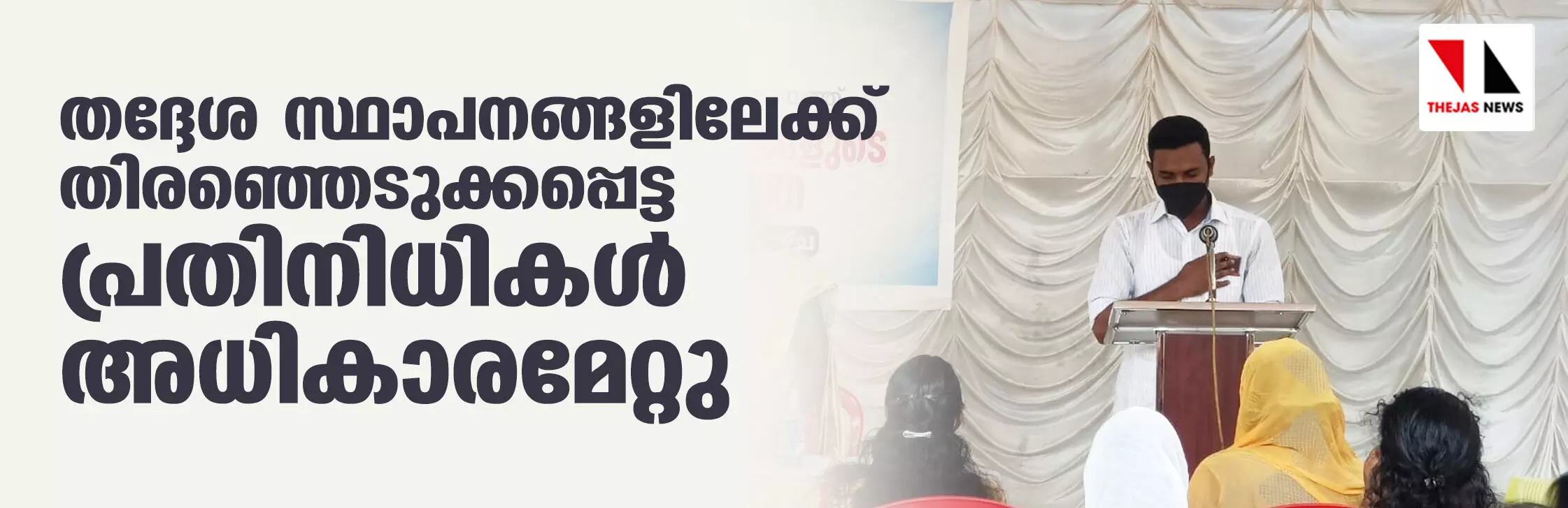 തിരുവനന്തപുരം: ഒരുമാസം നീണ്ട പ്രചാരണള്ക്കൊടുവില് തദ്ദേശസ്വയംഭരണ സ്ഥാപനങ്ങളിലേക്ക് തിരഞ്ഞെടുക്കപ്പെട്ട അംഗങ്ങള് സത്യപ്രതിജ്ഞ ചെയ്ത് അധികാരമേറ്റു. ഗ്രാമപ്പഞ്ചായത്ത്, ബ്ലോക്ക് പഞ്ചായത്ത്, ജില്ലാ പഞ്ചായത്ത്, മുനിസിപ്പല് കൗണ്സിലുകള് എന്നിവിടങ്ങളില് രാവിലെ 10നും കോര്പറേഷനുകളില് 11.30നുമാണ് സത്യപ്രതിജ്ഞ നടപടികള് തുടങ്ങിയത്. പതിവുപോലെ ഓരോ തദ്ദേശ സ്ഥാപനങ്ങളിലെയും തിരഞ്ഞെടുക്കപ്പെട്ട അംഗങ്ങളില് ഏറ്റവും പ്രായം കൂടിയ അംഗമാണ് വരണാധികാരി മുമ്പാകെ ആദ്യം സത്യപ്രതിജ്ഞ ചെയ്യുന്നത്. പിന്നീട് ഇദ്ദേഹമാണ് മറ്റ് അംഗങ്ങള്ക്ക് സത്യപ്രതിജ്ഞ ചൊല്ലിക്കൊടുക്കുന്നത്. തുടര്ന്ന് മുതിര്ന്ന അംഗത്തിന്റെ അധ്യക്ഷതയില് ആദ്യ യോഗം ചേരും.