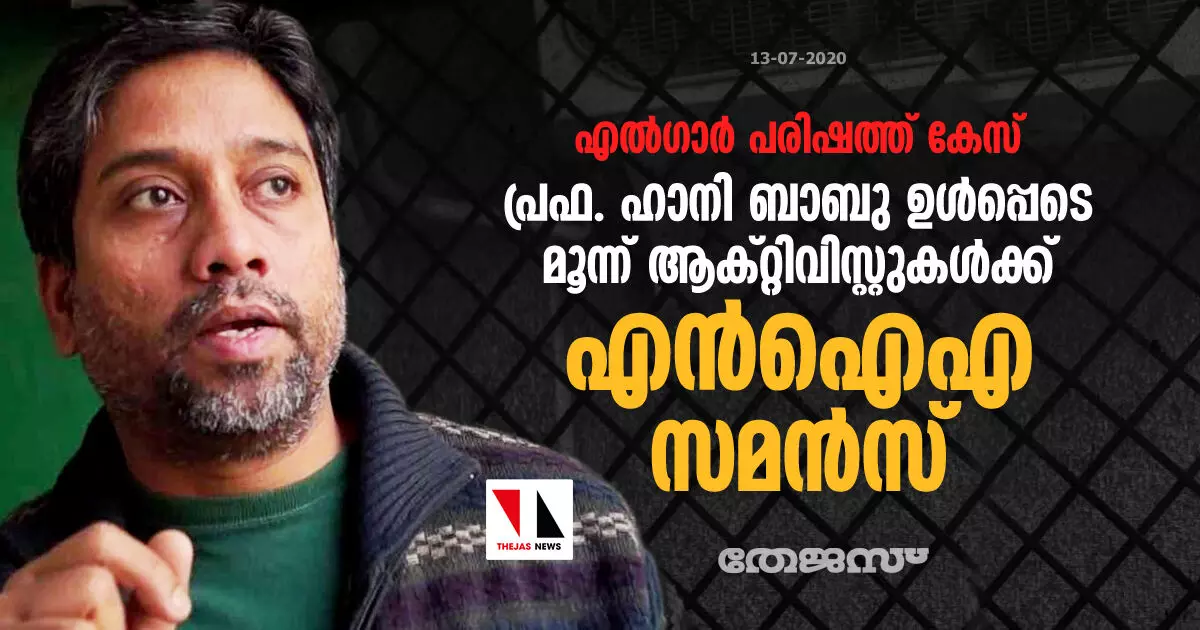 എല്ഗാര് പരിഷത്ത് കേസ്: പ്രഫ. ഹാനി ബാബു ഉള്പ്പെടെ മൂന്ന് ആക്റ്റിവിസ്റ്റുകള്ക്ക് എന്ഐഎ സമന്സ്