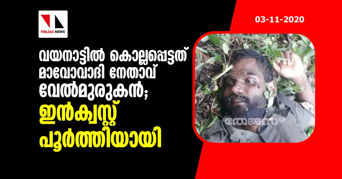 വയനാട്ടിൽ കൊല്ലപ്പെട്ടത് മാവോവാദി നേതാവ് വേൽമുരുകൻ; ഇന്ക്വസ്റ്റ് പൂര്ത്തിയായി