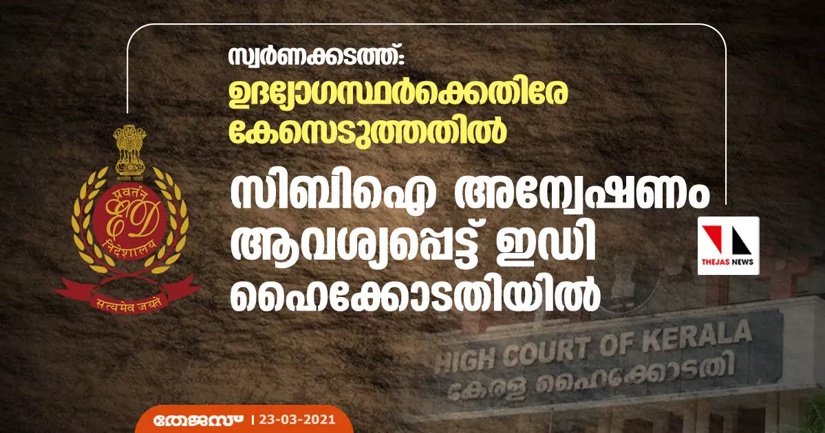 സ്വർണക്കടത്ത്: ഉദ്യോഗസ്ഥർക്കെതിരേ കേസെടുത്തതിൽ സിബിഐ അന്വേഷണം ആവശ്യപ്പെട്ട് ഇഡി ഹൈക്കോടതിയിൽ