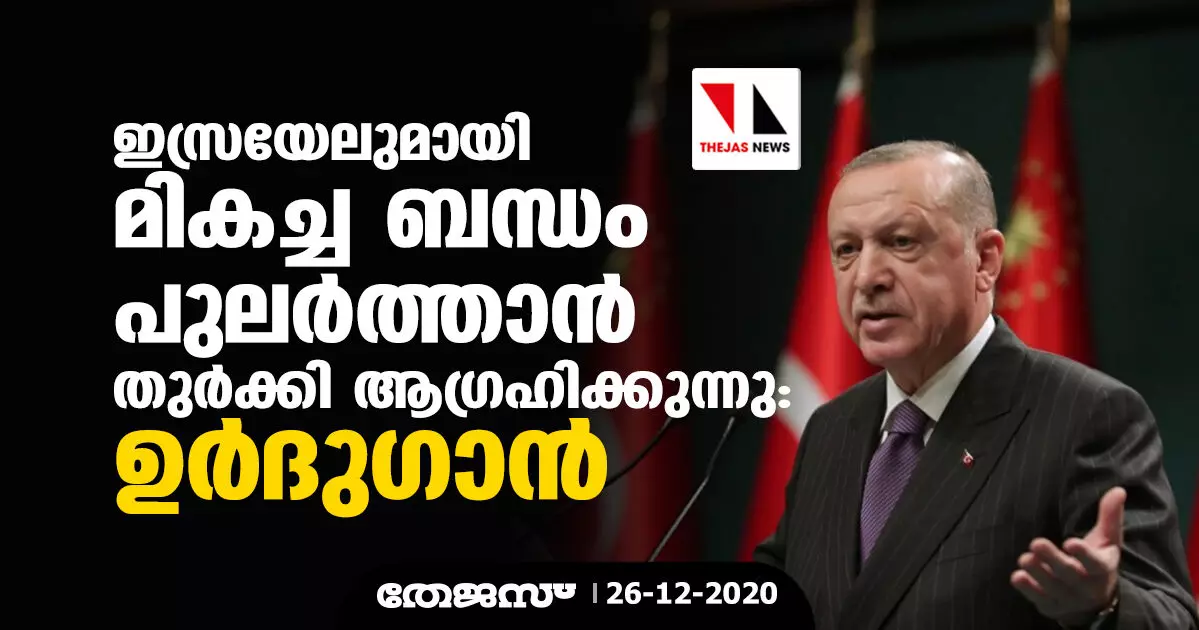 ഇസ്രായേലുമായി മികച്ച ബന്ധം പുലർത്താൻ തുർക്കി ആഗ്രഹിക്കുന്നു: ഉർദുഗാൻ
