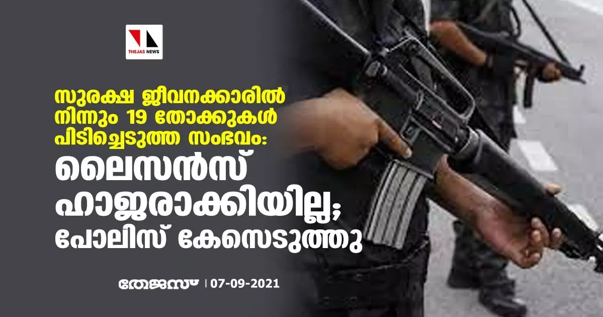 സുരക്ഷ ജീവനക്കാരില് നിന്നും 19 തോക്കുകള് പിടിച്ചെടുത്ത സംഭവം:ലൈസന്സ് ഹാജരാക്കിയില്ല ; പോലിസ് കേസെടുത്തു