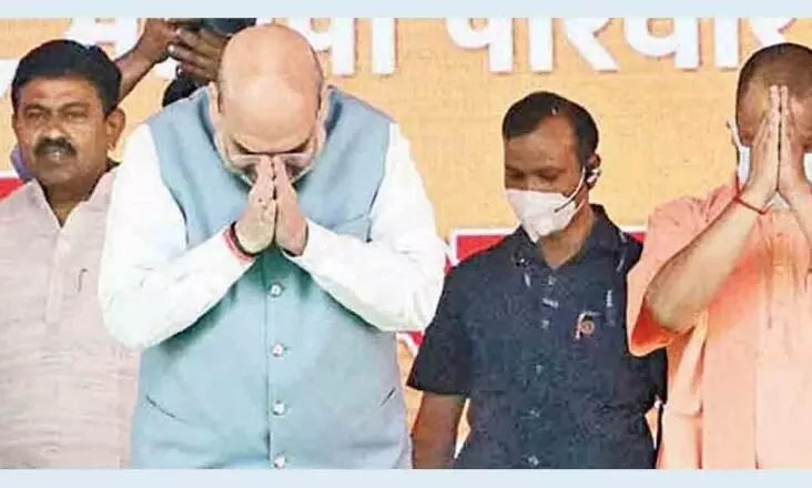 'ബൈനോക്കുലറിലൂടെ നോക്കിയാലും യുപിയില് ക്രിമിനലിനെ കാണില്ലെന്ന് അജയ് മിശ്രയെ അടുത്ത് നിര്ത്തി അമിത് ഷാ'