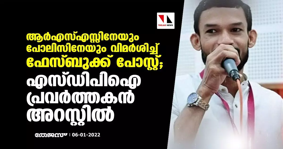 ആർഎസ്എസ്സിനേയും പോലിസിനേയും വിമർശിച്ച് ഫേസ്ബുക്ക് പോസ്റ്റ്; എസ്ഡിപിഐ പ്രവർത്തകൻ അറസ്റ്റിൽ