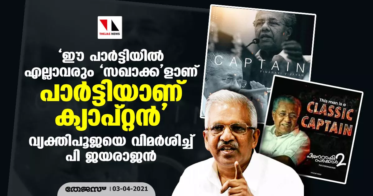 'ഈ പാര്ട്ടിയില് എല്ലാവരും 'സഖാക്ക'ളാണ്. പാര്ട്ടിയാണ് ക്യാപ്റ്റന്'; വ്യക്തിപൂജയെ വിമര്ശിച്ച് പി ജയരാജന്