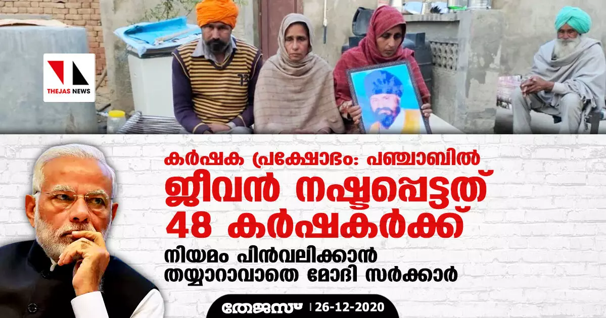 കര്ഷക പ്രക്ഷോഭം: പഞ്ചാബില് ജീവന് നഷ്ടപ്പെട്ടത് 48 കര്ഷകര്ക്ക് -നിയമം പിന്വലിക്കാന് തയ്യാറാവാതെ മോദി സര്ക്കാര്