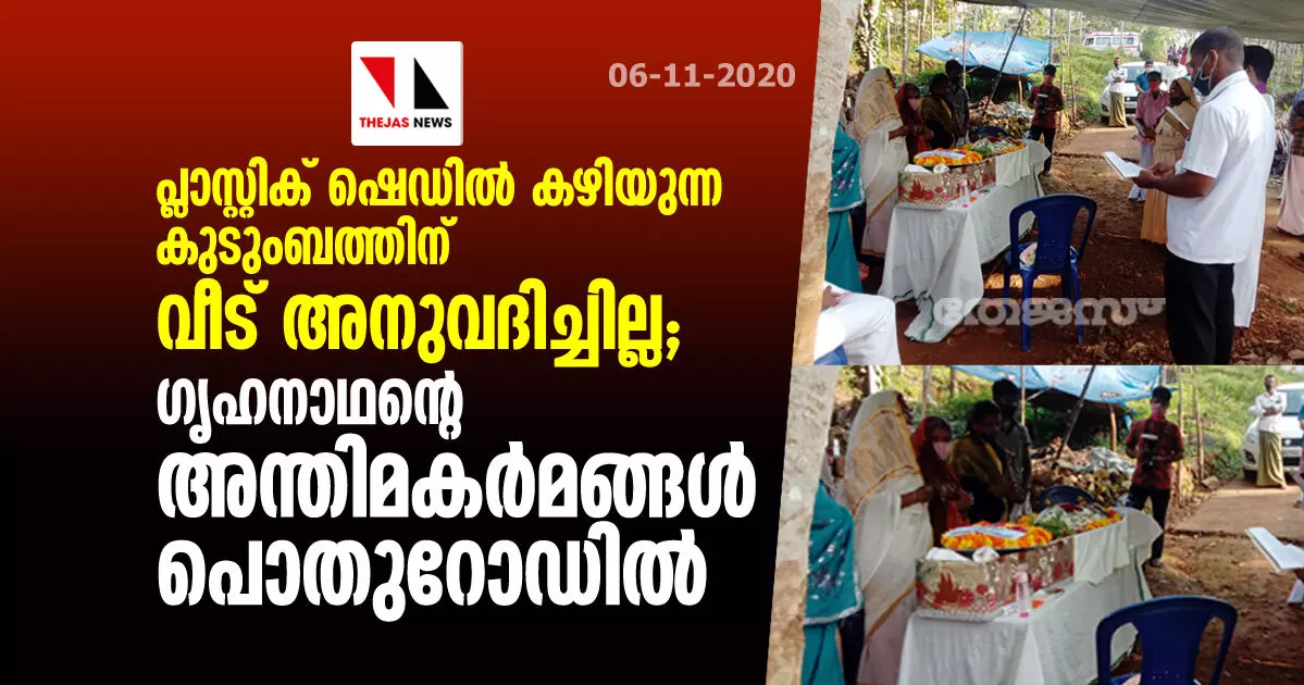 പ്ലാസ്റ്റിക് ഷെഡില് കഴിയുന്ന കുടുംബത്തിന് വീട് അനുവദിച്ചില്ല; ഗൃഹനാഥന്റെ അന്തിമകര്മങ്ങള് പൊതുറോഡില്