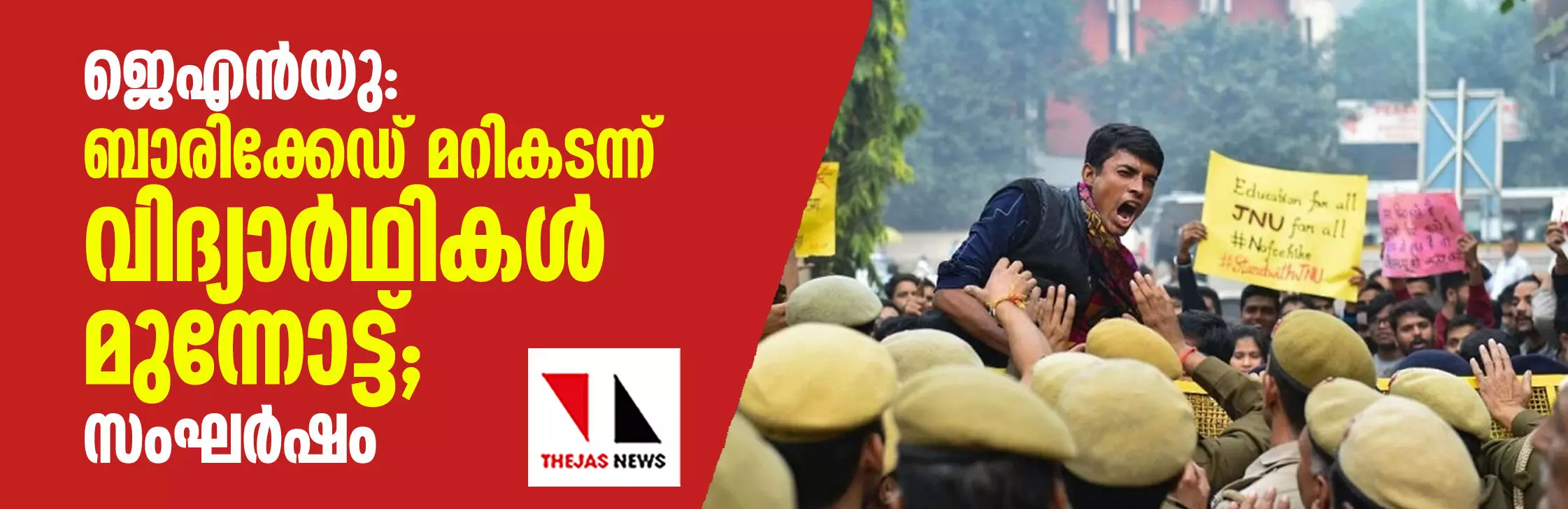 ജെഎന്യുവിൽ നിരോധനാജ്ഞ; ബാരിക്കേഡ് മറികടന്ന് വിദ്യാർഥികൾ മുന്നോട്ട്, സംഘർഷം