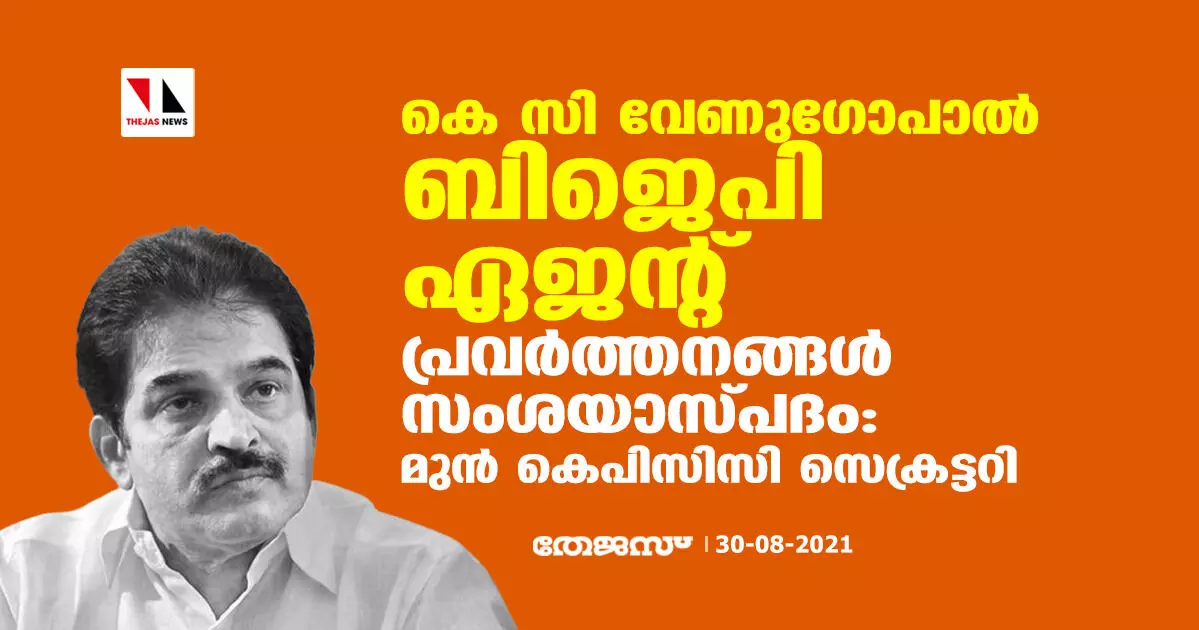 കെസി വേണുഗോപാല് ബിജെപി ഏജന്റ്, പ്രവര്ത്തനങ്ങള് സംശയാസ്പദം: മുന് കെപിസിസി സെക്രട്ടറി