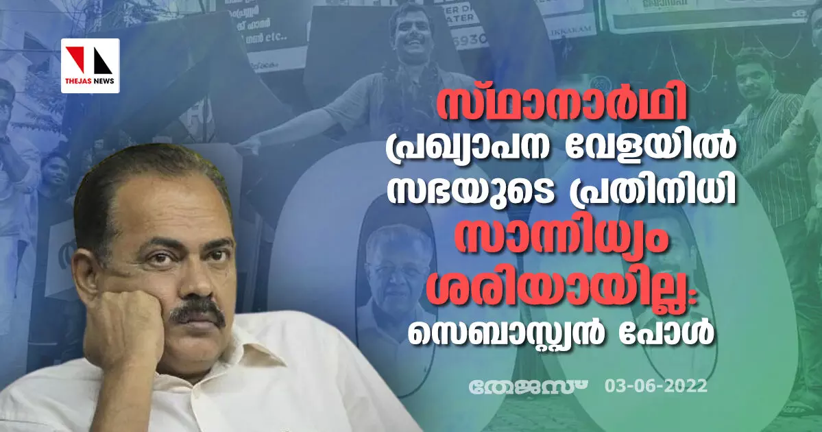 സ്ഥാനാര്ഥി പ്രഖ്യാപന വേളയില് സഭയുടെ പ്രതിനിധി സാന്നിധ്യം ശരിയായില്ല: സെബാസ്റ്റ്യൻ പോൾ