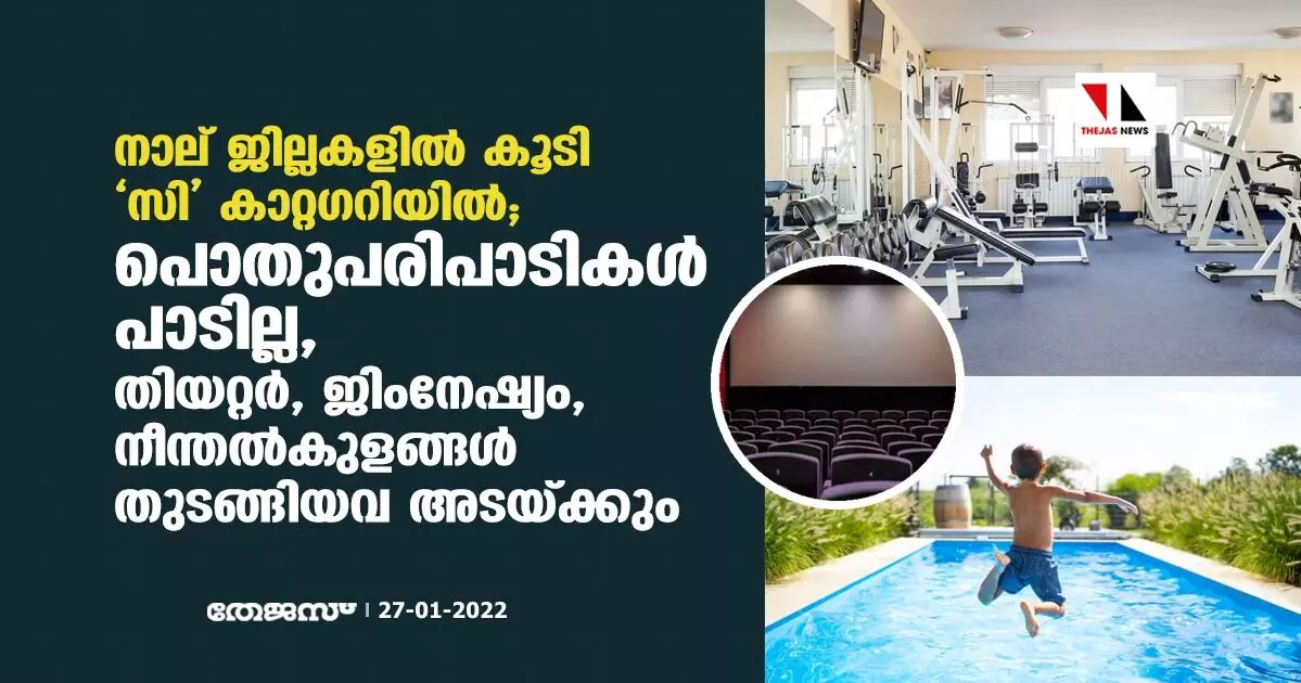 നാല് ജില്ലകള് കൂടി 'സി' കാറ്റഗറിയില്;പൊതുപരിപാടികള് പാടില്ല, തിയറ്റര്, ജിംനേഷ്യം, നീന്തല്കുളങ്ങള് തുടങ്ങിയവ അടയ്ക്കും