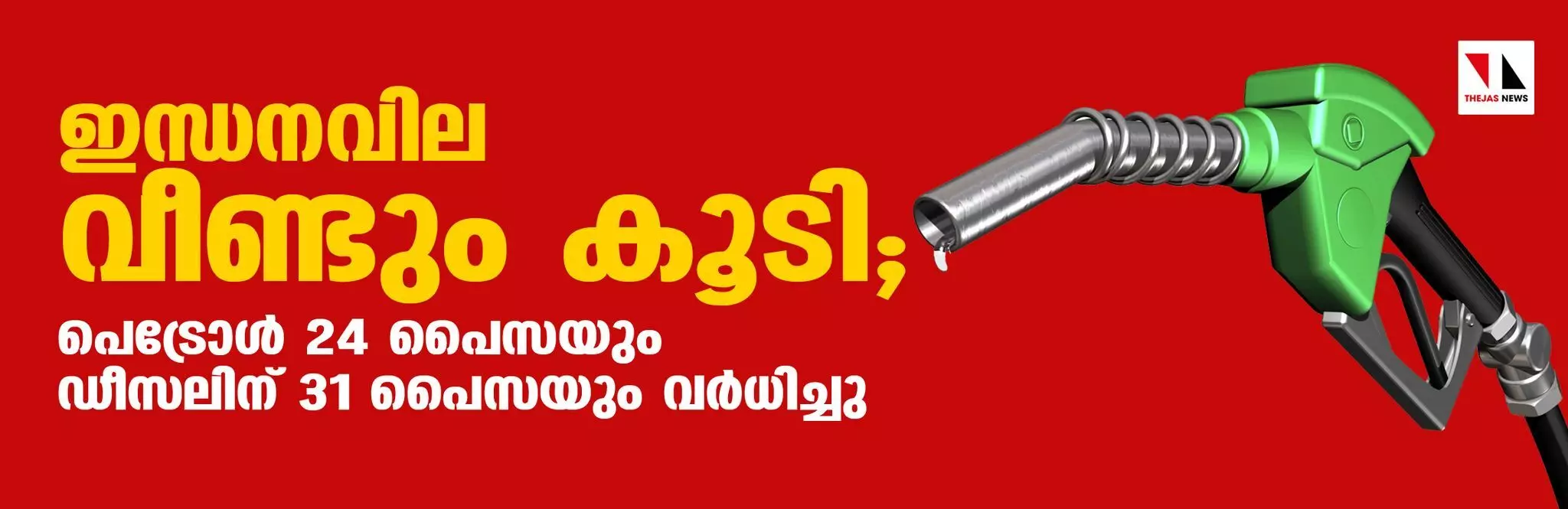 ഇന്ധനവില വീണ്ടും കൂടി; പെട്രോള് 24 പൈസയും ഡീസലിന് 31 പൈസയും വര്ധിച്ചു