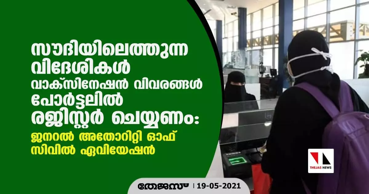 സൗദിയിലെത്തുന്ന വിദേശികള് വാക്സിനേഷന് വിവരങ്ങള് പോര്ട്ടലില് രജിസ്റ്റര് ചെയ്യണം: ജനറല് അതോറിറ്റി ഓഫ് സിവില് ഏവിയേഷന്
