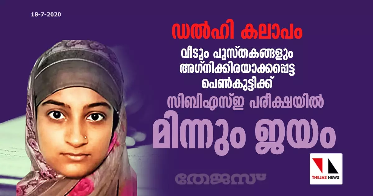 ഡല്ഹി കലാപം: വീടും പുസ്തകങ്ങളും അഗ്നിക്കിരയാക്കപ്പെട്ട പെണ്കുട്ടിക്ക് സിബിഎസ്ഇ പരീക്ഷയില് മിന്നും ജയം