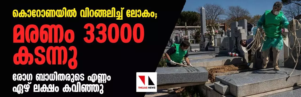 കൊറോണയില് വിറങ്ങലിച്ച് ലോകം; മരണം 33000 കടന്നു, രോഗ ബാധിതരുടെ എണ്ണം ഏഴ് ലക്ഷം കവിഞ്ഞു