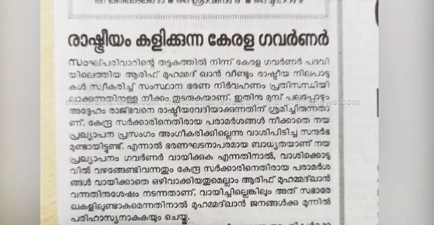 'ഗവര്ണര് രാഷ്ട്രീയം കളിക്കുന്നു, ലക്ഷ്യം ഭരണ പ്രതിസന്ധി'; ഗവര്ണര്ക്കെതിരേ രൂക്ഷവിമര്ശനവുമായി ജനയുഗം