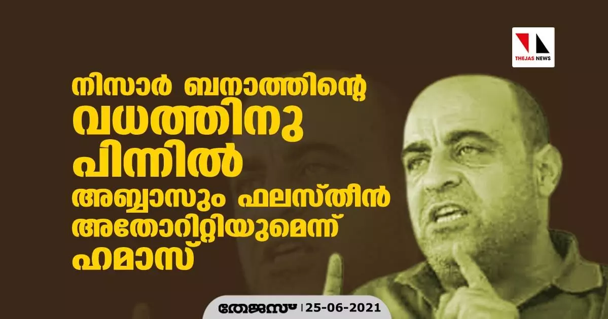 നിസാര് ബനാത്തിന്റെ വധത്തിനു പിന്നില് അബ്ബാസും ഫലസ്തീന് അതോറിറ്റിയുമെന്ന് ഹമാസ്