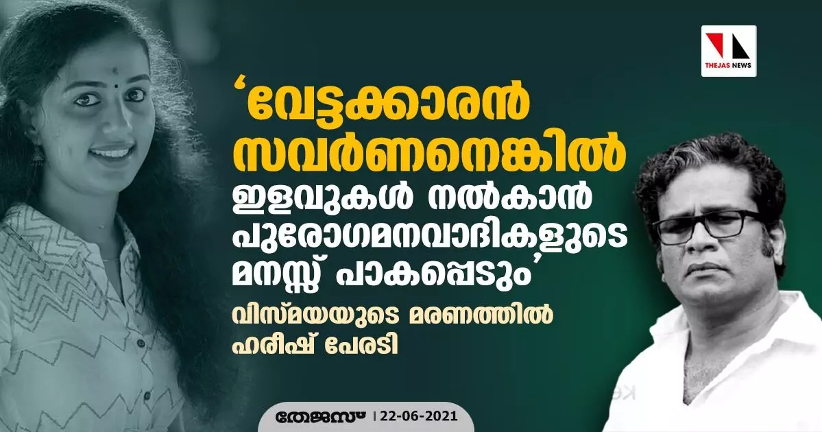 'വേട്ടക്കാരൻ സവർണനെങ്കിൽ ഇളവുകൾ നൽകാൻ പുരോഗമനവാദികളൂടെ മനസ്സ് പാകപ്പെടും'; വിസ്മയയുടെ മരണത്തിൽ ഹരീഷ് പേരടി