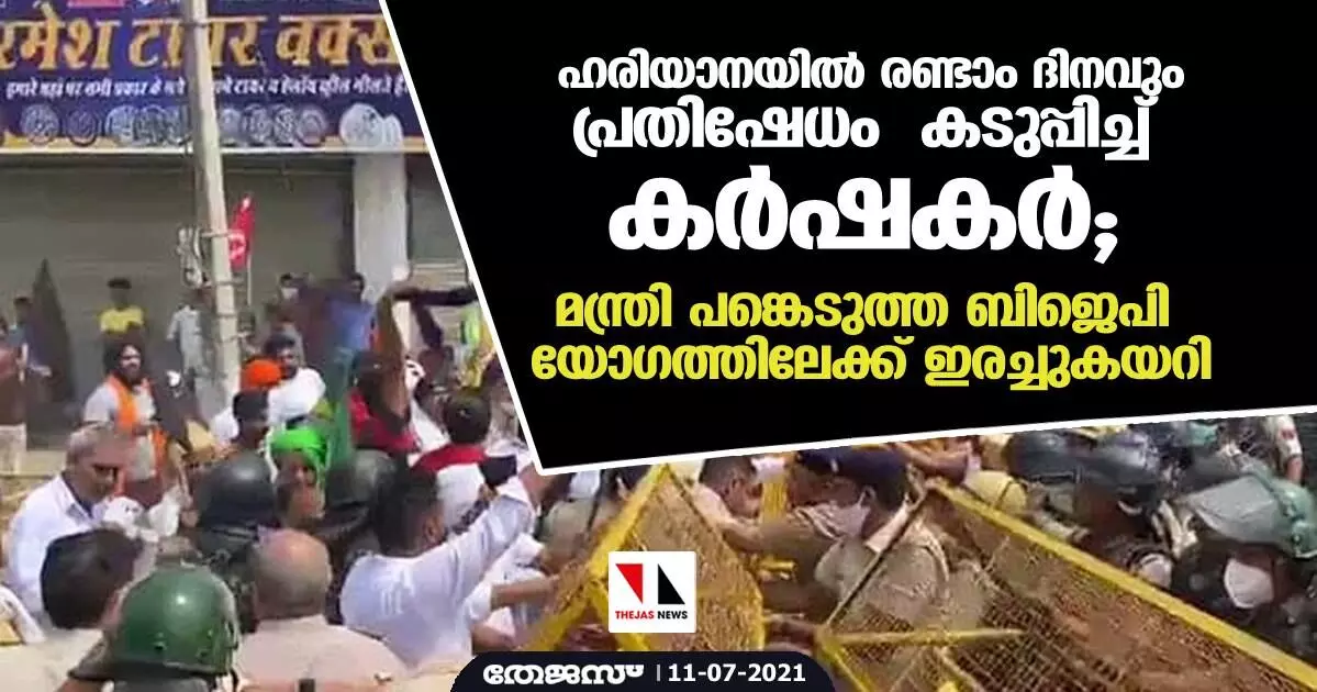 ഹരിയാനയില് രണ്ടാം ദിനവും പ്രതിഷേധം കടുപ്പിച്ച് കര്ഷകര്; മന്ത്രി പങ്കെടുത്ത ബിജെപി യോഗത്തിലേക്ക് ഇരച്ചുകയറി