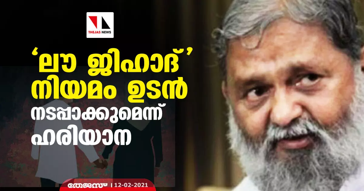 'ലൗ ജിഹാദ്' നിയമം ഉടന് നടപ്പാക്കുമെന്ന് ഹരിയാന