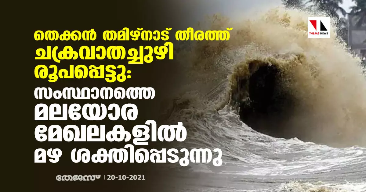 തെക്കൻ തമിഴ്നാട് തീരത്ത് ചക്രവാതച്ചുഴി രൂപപ്പെട്ടു; സംസ്ഥാനത്തെ മലയോര മേഖലകളിൽ മഴ ശക്തിപ്പെടുന്നു