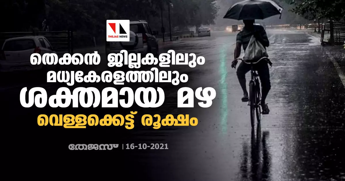 തെക്കന് ജില്ലകളിലും മധ്യകേരളത്തിലും ശക്തമായ മഴ; വെള്ളക്കെട്ട് രൂക്ഷം