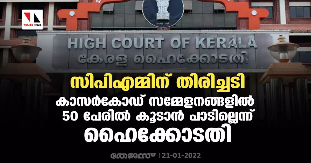 സിപിഎമ്മിന് തിരിച്ചടി; കാസര്കോഡ് സമ്മേളനങ്ങളില് 50 പേരില് കൂടാന് പാടില്ലെന്ന് ഹൈക്കോടതി