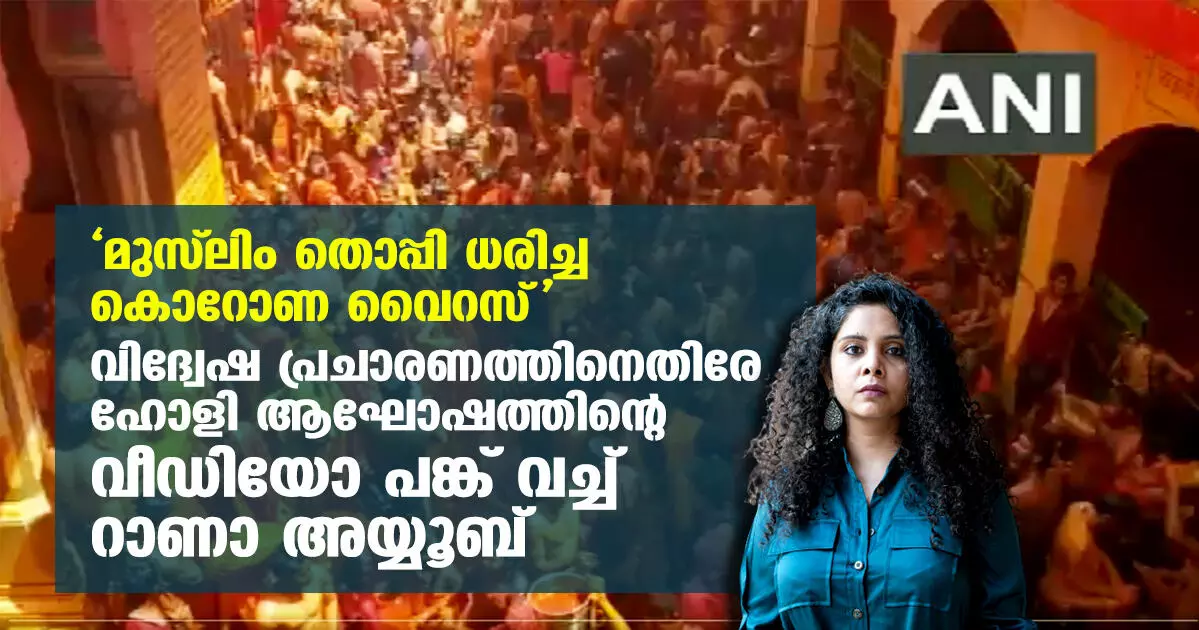 'മുസ് ലിം തൊപ്പി ധരിച്ച കൊറോണ വൈറസ്'; വിദ്വേഷ പ്രചാരണത്തിനെതിരേ ഹോളി ആഘോഷത്തിന്റെ വീഡിയോ പങ്ക് വച്ച് റാണാ അയ്യൂബ്