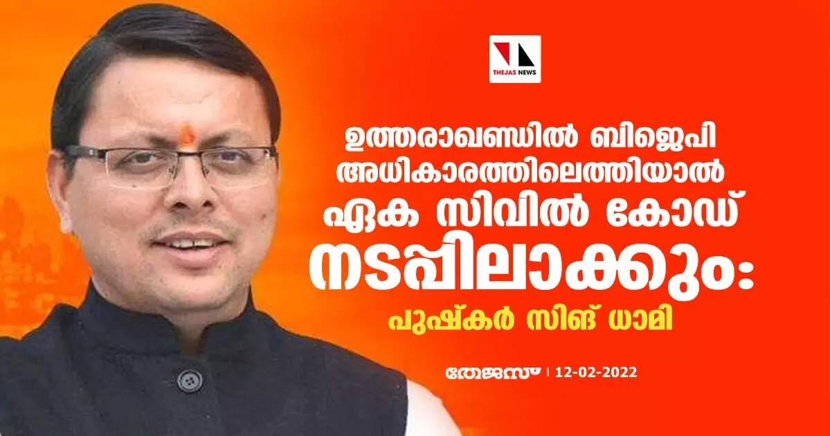 ഉത്തരാഖണ്ഡില് ബിജെപി അധികാരത്തിലെത്തിയാല് ഏക സിവില് കോഡ് നടപ്പിലാക്കും:പുഷ്കര് സിങ് ധാമി