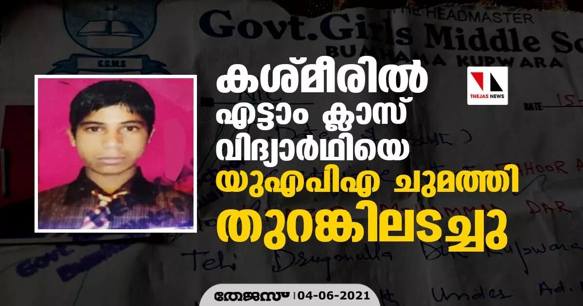 കശ്മീരില് എട്ടാം ക്ലാസ് വിദ്യാര്ഥിയെ യുഎപിഎ ചുമത്തി തുറങ്കിലടച്ചു