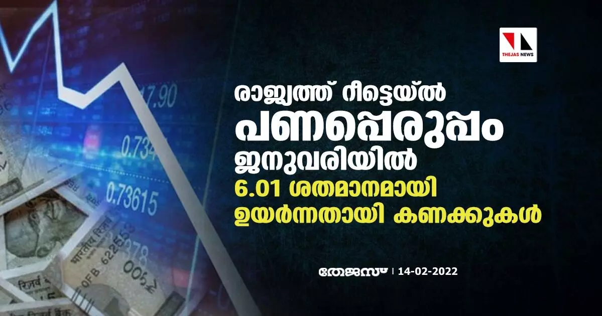 രാജ്യത്ത് റീട്ടെയ്ൽ പണപ്പെരുപ്പം ജനുവരിയിൽ 6.01 ശതമാനമായി ഉയർന്നതായി കണക്കുകൾ