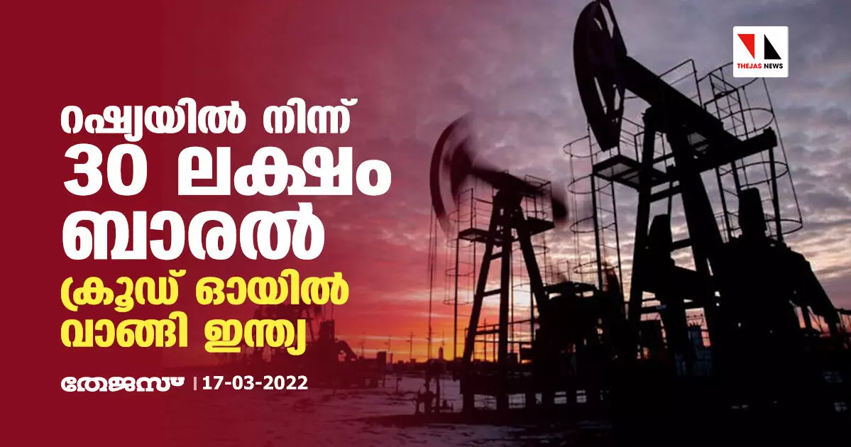 റഷ്യയില് നിന്ന് 30 ലക്ഷം ബാരല് ക്രൂഡ് ഓയില് വാങ്ങി ഇന്ത്യ