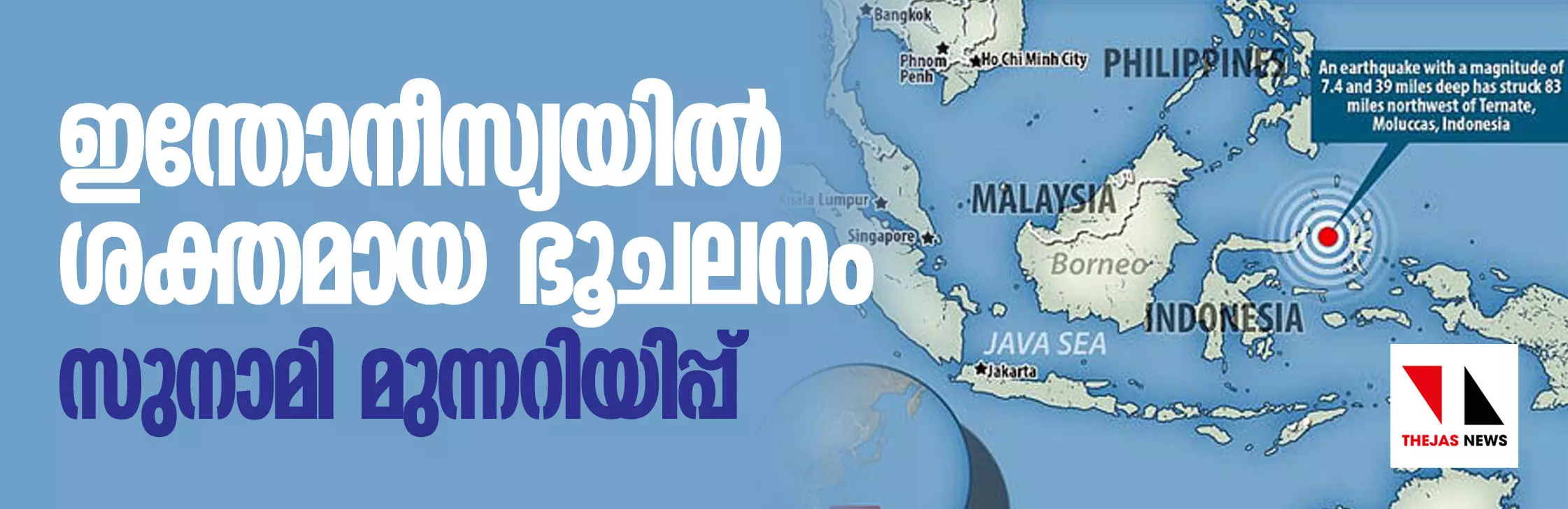 ഇന്തോനീസ്യയില് ശക്തമായ ഭൂചലനം; സുനാമി മുന്നറിയിപ്പ്