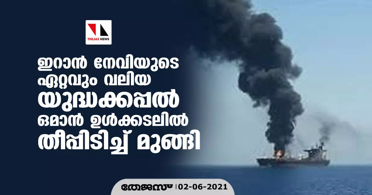 ഇറാന് നേവിയുടെ ഏറ്റവും വലിയ യുദ്ധക്കപ്പല് ഒമാന് ഉള്ക്കടലില് തീപ്പിടിച്ച് മുങ്ങി