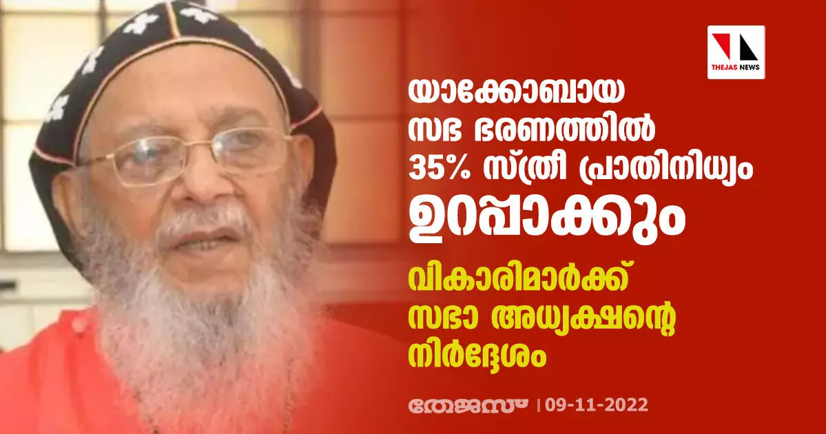 യാക്കോബായ സഭ ഭരണത്തിൽ 35% സ്ത്രീ പ്രാതിനിധ്യം ഉറപ്പാക്കും; വികാരിമാർക്ക് സഭാ അധ്യക്ഷന്റെ നിർദ്ദേശം