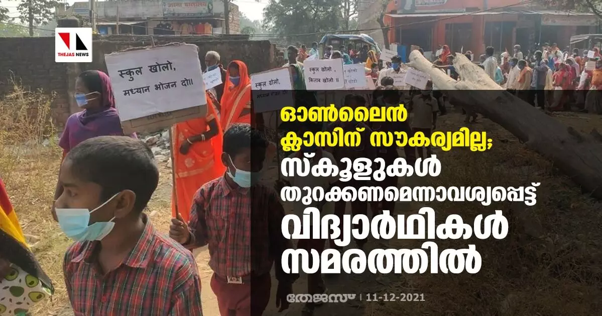 ഓൺലൈൻ ക്ലാസിന് സൗകര്യമില്ല; സ്കൂളുകൾ തുറക്കണമെന്നാവശ്യപ്പെട്ട് വിദ്യാർഥികൾ സമരത്തിൽ