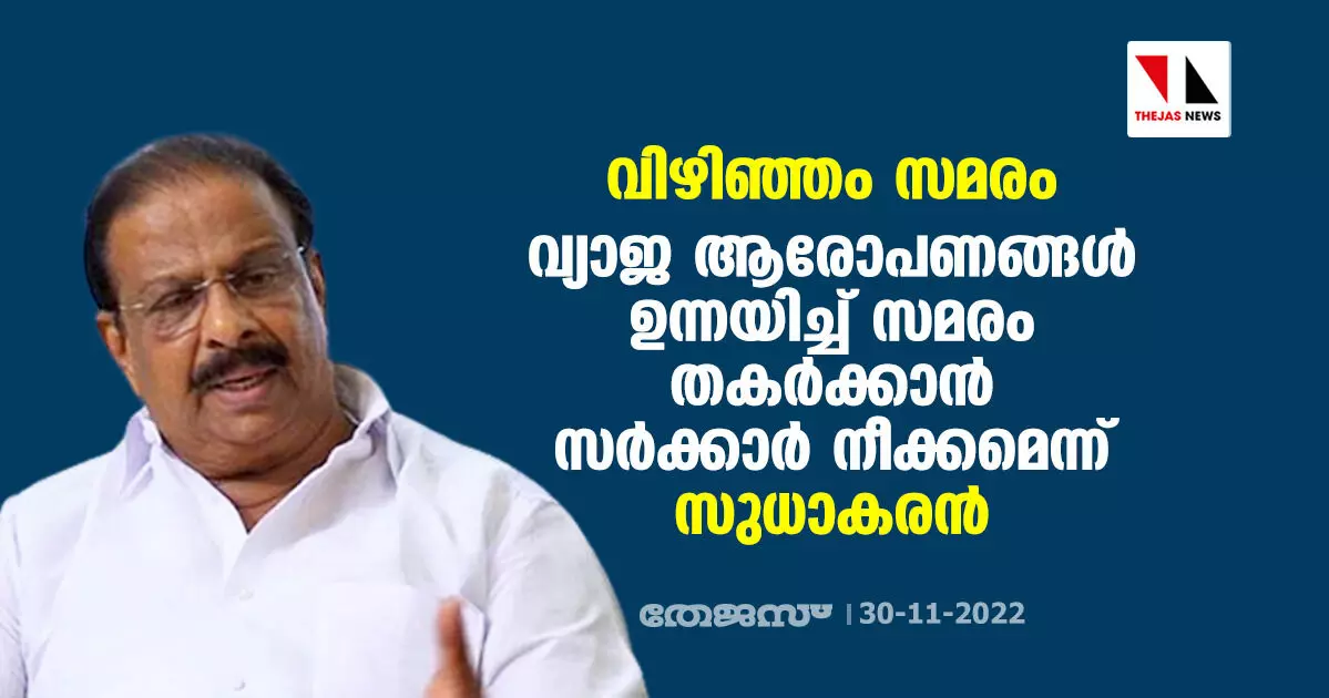 വിഴിഞ്ഞം സമരം: വ്യാജ ആരോപണങ്ങൾ ഉന്നയിച്ച് സമരം തകര്ക്കാൻ സര്ക്കാര് നീക്കമെന്ന് സുധാകരന്