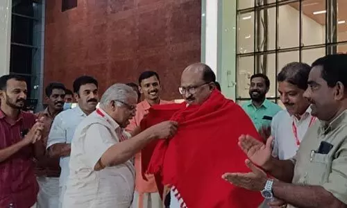 ജയരാജന് ചുവന്ന ഷാള് അണിയിച്ചാണ് തോമസിനെ സ്വീകരിച്ചത്. തനിക്ക് പറയാനുള്ളതെല്ലാം പാര്ട്ടി സമ്മേളനത്തിന്റെ ഭാഗമായ സെമിനാറില് താന് പറയുമെന്ന് കെ വി തോമസ് വ്യക്തമാക്കി. ചുവന്ന നിറമാണെങ്കിലും തന്നെ അണിയിച്ചത് ഒരു ഷാള് ആണെന്ന് നിറത്തെക്കുറിച്ചുള്ള ചോദ്യത്തോട് തോമസ് പ്രതികരിച്ചു. സുഹൃത്ത് എന്ന നിലയിലാണ് ജയരാജന് ഷാള് അണിയിച്ചതെന്ന് ചുവന്ന ഷാള് സ്ഥിരമാക്കുമോയെന്ന ചോദ്യത്തിന് കെ വി തോമസ് മറുപടി നല്കി.